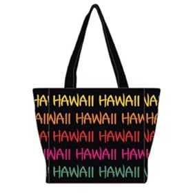 Hawaiian Canvas Tote Bag Robin Ruth Black Rainbow Small: Kitchen & Dining