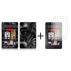 Bluecell 052 Red Eyes Monster pattern Skin Decal + 3 Pcs LCD Screen Protector for Kindle Fire + Free Bluecell Cable Tie: MP3 Players & Accessories