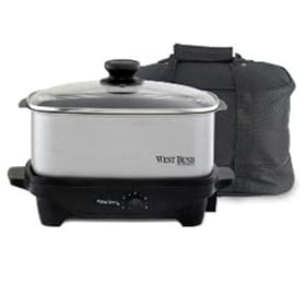 West Bend 84915 5-Quart Oblong-Shaped Slow Cooker with Tote: Kitchen & Dining