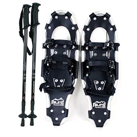 Alps All Terrian Snowshoes 22" + pair antishock adjustable snowshoes poles (Black) + free carrying tote bag: Sports & Outdoors