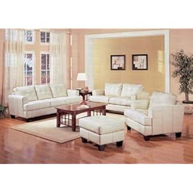 Modern Florence Style Loveseat Genuine White Leather: Home & Kitchen