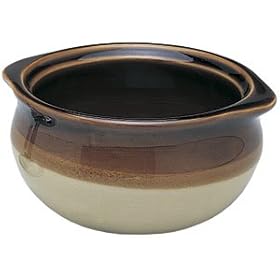 NEW, 10 oz. (Ounce) French Onion Soup Bowl, Crock Bowl, Single-Serving, Ceramic, Two-Tone Color, Flat Rim, Two-eared Rim Handle: Kitchen & Dining