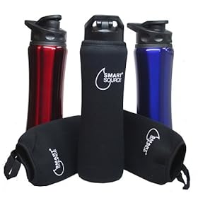 Smart Source Stainless Steel Water Bottles - 3 Pack (Red, Silver, Blue) with 3 Neoprene Sleeves in Black: Sports & Outdoors