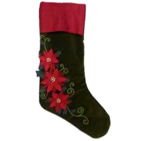 Green Velvet Pointsettia Stocking with Silk Flowers & Beading: Everything Else