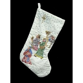 16" White Velvet Beaded 3 Wise Men and Star of Bethlehem Christmas Stocking: Everything Else