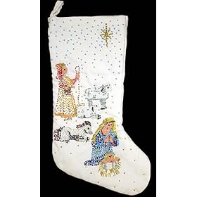 16" White Velvet Beaded Holy Family Nativity Scene Christmas Stocking: Everything Else