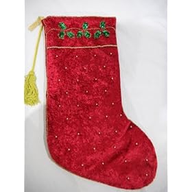 18" Red Velvet Holly Beaded Christmas Stocking: Everything Else