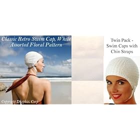 Floral / Flower Embossed Swim Cap and Classic Chin Strap - Twin Pack: Everything Else