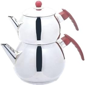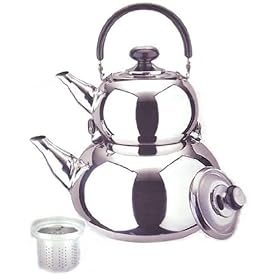 18/10 STAINLESS STEEL TURKISH SAMOVAR STYLE DOUBLE TEA KETTLE & POT: Kitchen & Dining