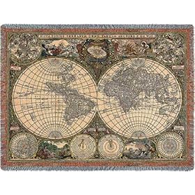 Old World Map Tapestry Throw Blanket with Double Hemisphere: Sports & Outdoors