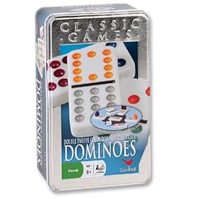 Cardinal Double 12 Color Dot Mexican Train Dominoes in Tin: Toys & Games