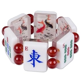White "Koi" Tile and Amber Classic Mahjong Tile Bracelet: Toys & Games