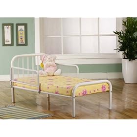 White Finish Metal Toddler Bed Frame with Rails: Home & Kitchen