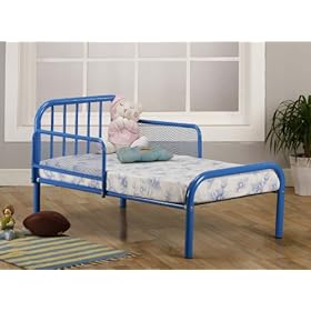 Blue Finish Metal Toddler Bed Frame with Rails: Baby