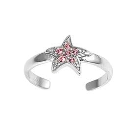 Sterling Silver Fashion Toe Ring - Starfish with Clear and Pink CZs - 2mm Band Width: Jewelry