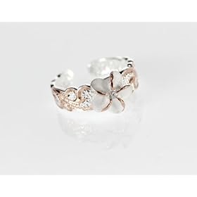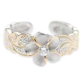 Hawaiian Sterling Silver Plumeria Flower CZ Toe Ring Jewelry: Jewelry