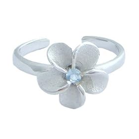 Hawaiian Jewelry Sterling Silver Blue CZ Flower Toe Ring: Jewelry
