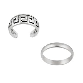 Sterling Silver Greek Key and Polished Band Toe Rings, Set of 2: Jewelry