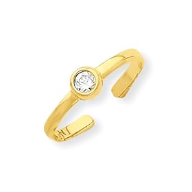Solid 14K Yellow White Gold Elegant Cubic Zirconia Toe Ring: Jewelry