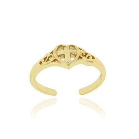 18K Gold over Sterling Silver Cross in Heart Toe Ring: Jewelry
