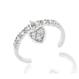 Sterling Silver CZ Dangling Heart Toe Ring: Jewelry