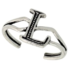 Sterling Silver Initial L Adjustable (Size 2.5 to 5) Toe Ring / Kid"s Ring, 3/8 in. )9mm) wide: Jewelry