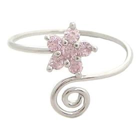 Cleversilver"s 3 Pink Crystal Flower Toe Ring: CleverSilver: Jewelry