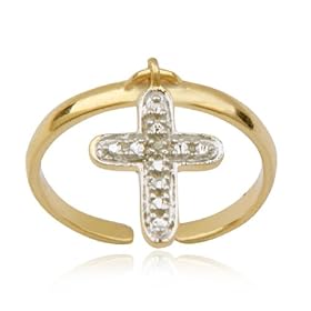 18k Yellow Gold Plated Sterling Silver Diamond-Accent Cross Adjustable Toe Ring: Jewelry