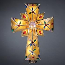 Kurt Adler 10-1/2-Inch Gold Capiz Cross Treetop Accented with Assorted Multi Gems with Nickel Finish: Home & Kitchen