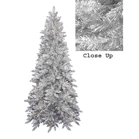 6.5" Downswept Silver Tinsel Noble Pine Slim Artificial Christmas Tree - Unlit: Home & Kitchen