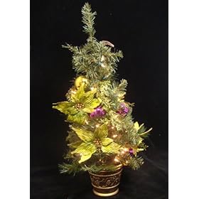 32 Inch Pre-lit Decorated Tree in Brown Pot: Home & Kitchen