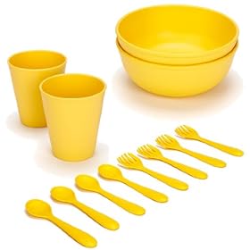Green Eats 4 Pack Eco-Friendly Feeding Spoons and Forks with 2 Pack Tumblers and 2 Pack Bowls Yellow Set: Baby