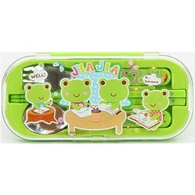 green Bento Cutlery Set four frogs cute: Kitchen & Dining