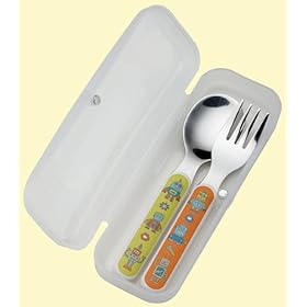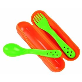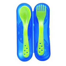 Travel Case with Fork & Spoon - Green w/Blue Case: Baby