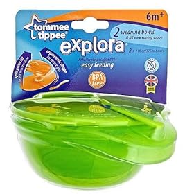 Tommee Tippee Explora Weaning Bowls 2-pack with Lid & Weaning Spoon - Green: Baby