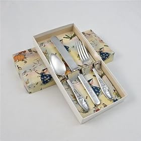Youth Fork, Knife & Spoon, Silverplate Pretty Puss: Kitchen & Dining