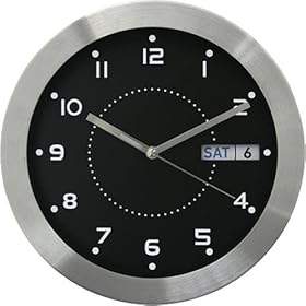 Equity Time Usa 87784 11" Day & Date Wall Clock, Silver and Black: Home Improvement