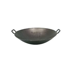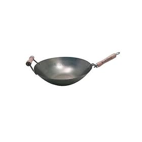 16 Inch Carbon Steel Wok w/ 2 Steel Handles (Flat Bottom) USA Made: Kitchen & Dining