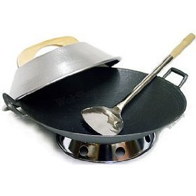 Carbon Steel Wok Set: Flat Bottom w/ helper handle. Wok is USA made: Kitchen & Dining