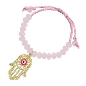 Pink Braided Stone Gold Plated Hamsa/Hand of Fatima Charm Bracelet with Evil Eye: Jewelry