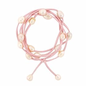 Leather and Pearl Wrap-around Convertible 2-in-1 "Bobbi" Bracelet in Pink Presented in Complementary Silk Organza Jewelry Pouch: Jewelry