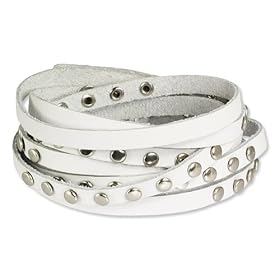 SilberDream leather bracelet white with rivets ,unisex, genuine leather LA2250W: SilberDream: Jewelry