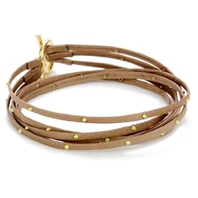 gorjana "Graham" Tan Genuine Leather Studded Triple Strand Wrap Bracelet: Jewelry