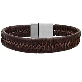Men"s Stainless Steel Genuine Leather Bracelet with Soft Braided Leather and Matte Steel Magnetic Closure 8 1/2 Inches Long: Inox: Jewelry
