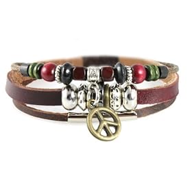 Peace Sign Rugged Leather Zen Bracelet - Adjustable, Fits 5 to 8 Inches, for Men, Women, Teens, Boys and Girls (Foil Gift Box): Jewelry
