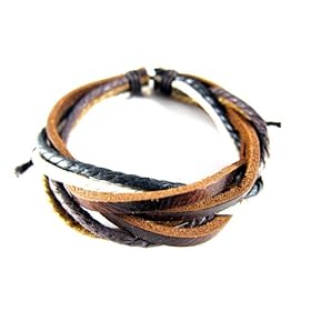 Adjustable Multi-strand Brown Leather Bracelet, 7-9": Jewelry