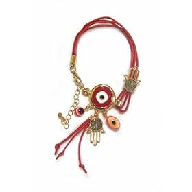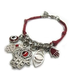 Red Cord Bracelet with Hamsa/Hand of Fatima and Evil Eye Charms - Good Luck Bracelet: Jewelry