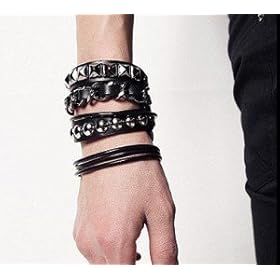 Men"s Black Leather Bracelet Package-rock Style: Jewelry