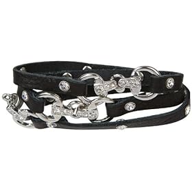 Trendy Black Leather Wrap Bracelet with Crystal Studded Horse Tack Clasp: Jewelry