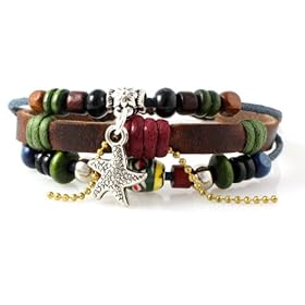 Starfish Beaded Leather Zen Bracelet, Fits 6 to 9 Inches: Jewelry
